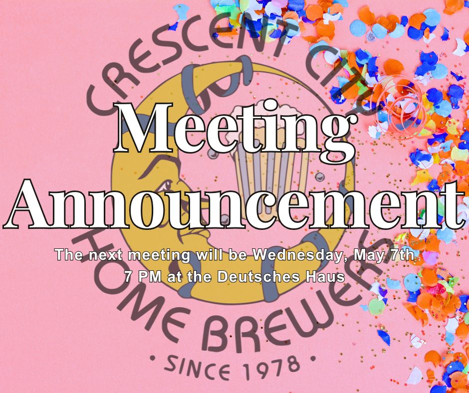 It’s that time again! The next meeting of the Crescent City Homebrewers will be this Wednesday, May 7th at 7 PM, at the Deutsches Haus.
