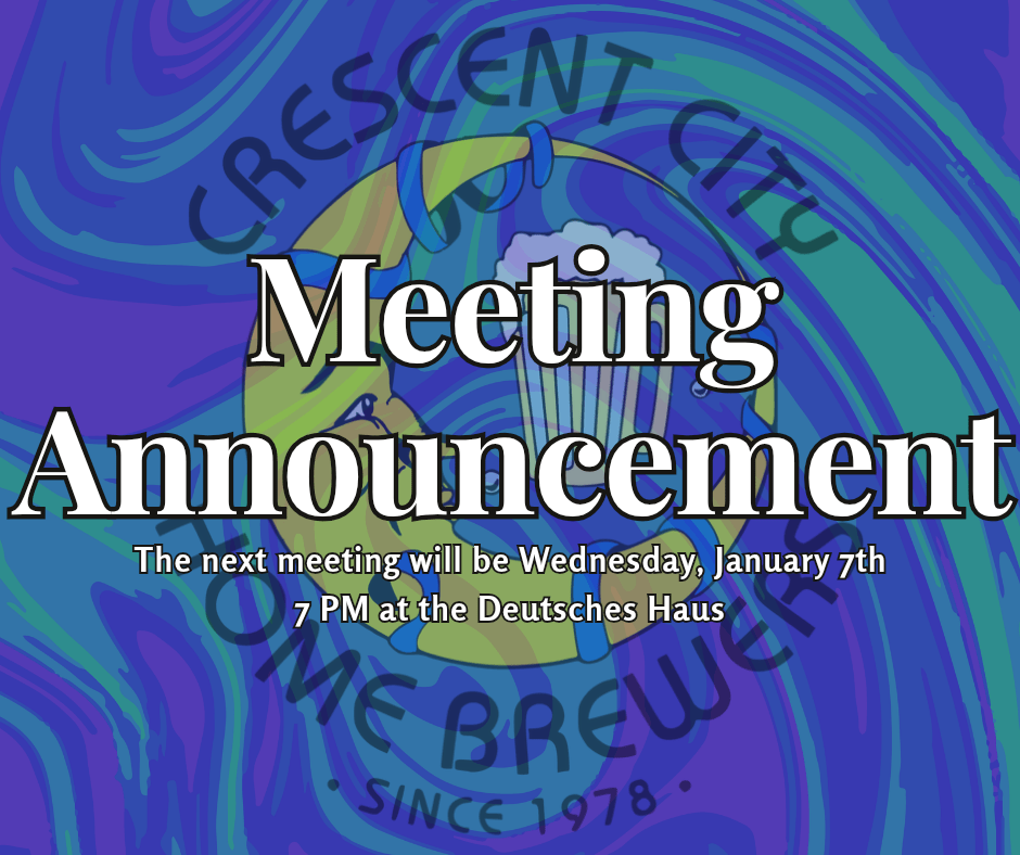 It’s that time again! The next meeting of the Crescent City Homebrewers will be this Wednesday, January 7th. 7 PM at the Deutsches Haus.