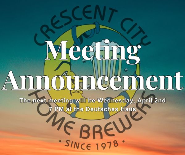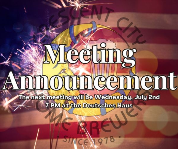 It's that time again! The next meeting of the Crescent City Homebrewers will be this Wednesday, June 4th, at 7 PM at the Deutsches Haus. We have a lot of upcoming events to discuss, including the 2025 Brewery Bus Trip. So come on down for the information, and stick around for the homebrew!